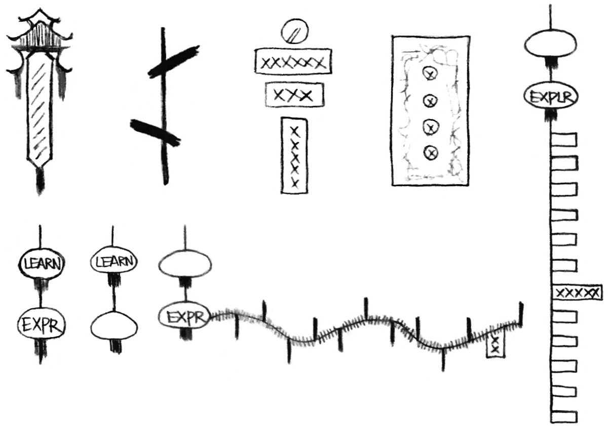 The place section managed to maintain a complete interrelation with the audio clip section, only through the second dish. Curves 2345 were all one‐way links that provided no indication of the orientation for users.